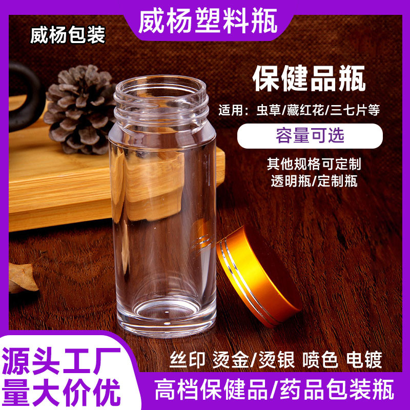 現物高級健康食品プラスチックボトルアクリル透明薬瓶密封缶食品級カプセル分注空瓶