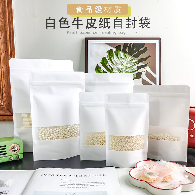 高清開窓白色クラフト紙袋自立自封袋食品包装袋茶葉密封袋プラスチック密封袋
