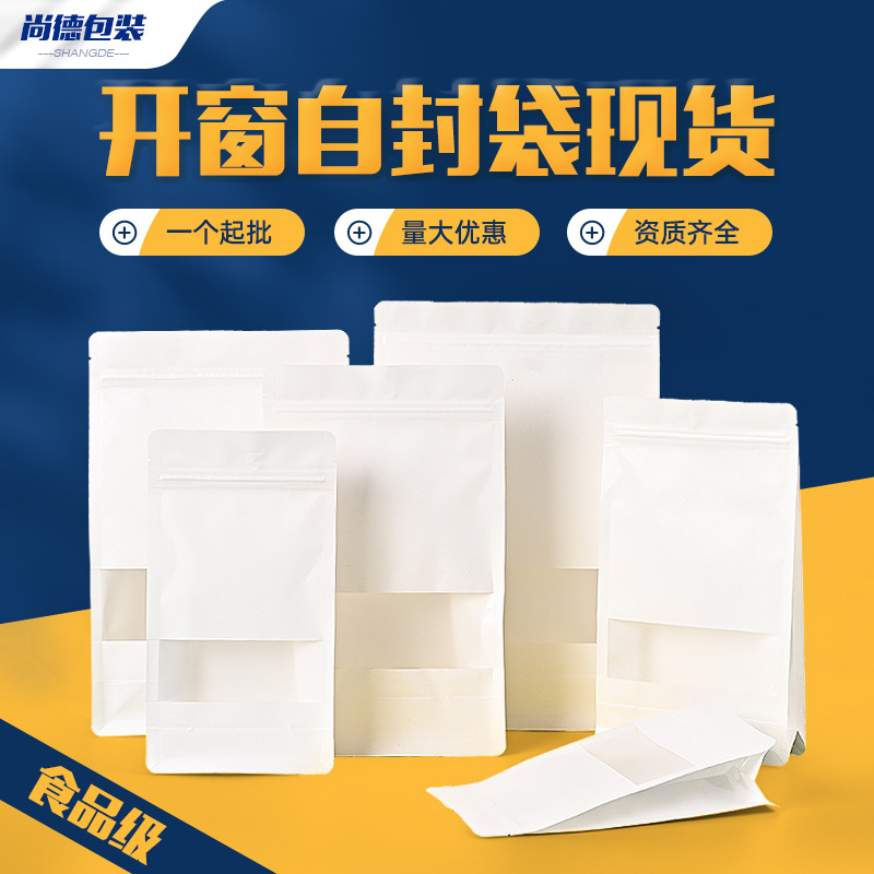 現物八辺封白色フロストクラフト紙袋自封包装袋茶葉ドライフルーツ包装袋防湿卸売り