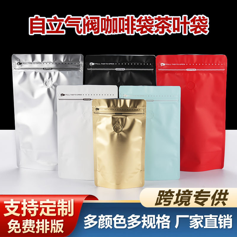 50个装自立咖啡豆袋食品级哑光彩色排气阀茶叶自封袋铝箔袋打包袋