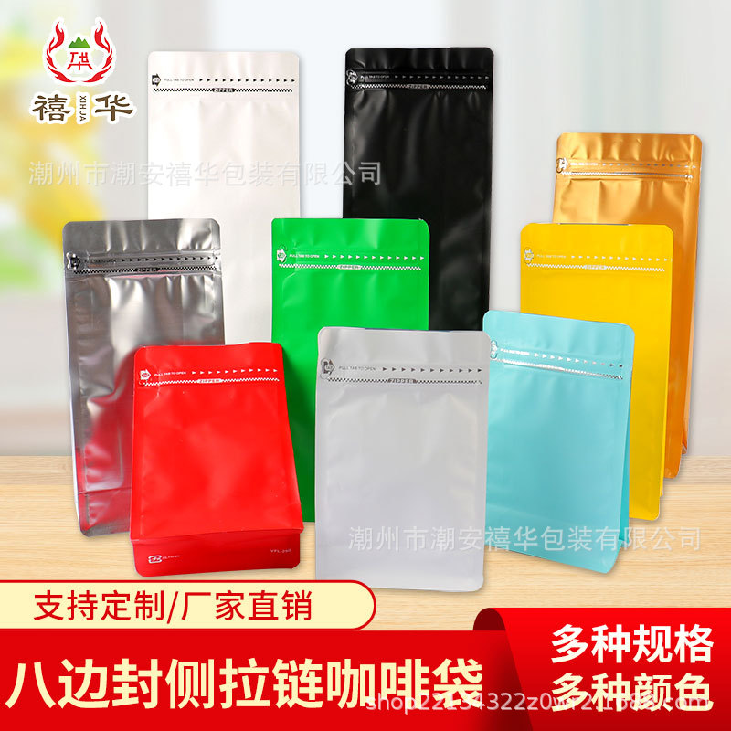 コーヒー豆包装袋茶葉コーヒー食品ナッツ八辺封自立袋ガス弁密封ファスナーアルミ箔袋