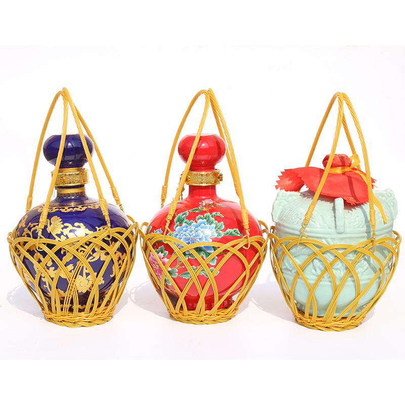 模造藤塑編合併酒提籠10斤塑編双酒壇かご3斤5斤スーパー贈答ホテル置物