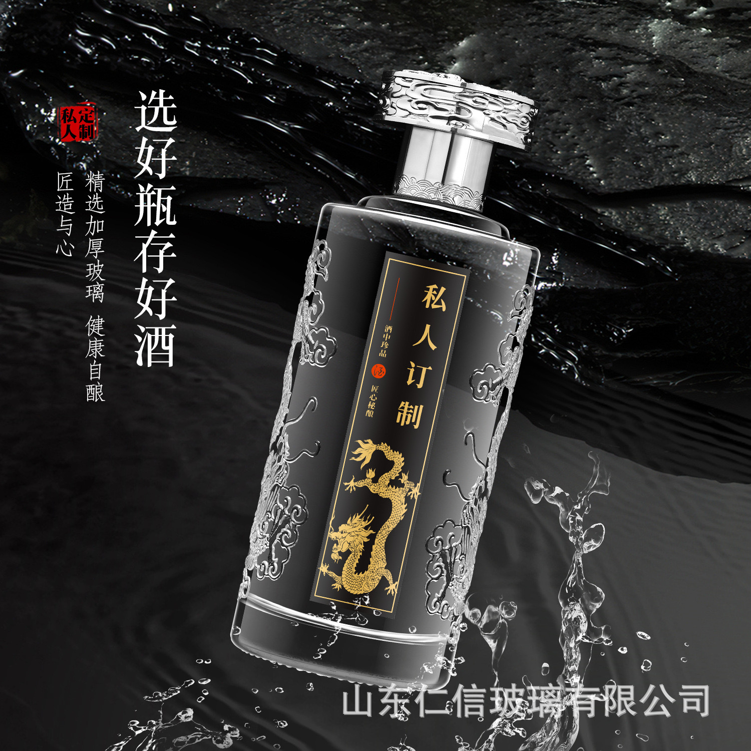 高颜値龍紋透明ボトル空ボトル1斤入りガラス厚さ白ボトルセットラベル付き卸売り