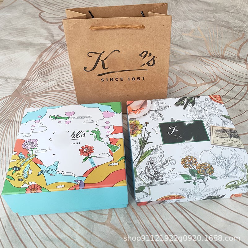 科顔のキンセンカのスキンケアギフトボックスに似合う美しいクラフト紙の手提げ袋は個人用包装に適しています。