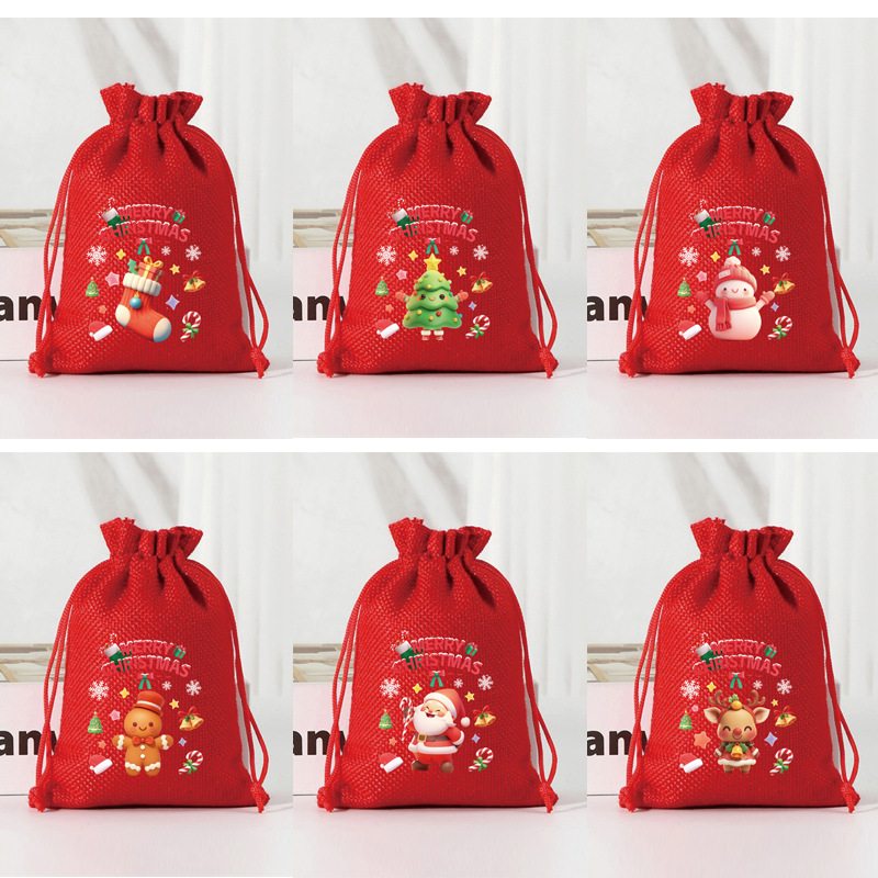 クロスボーダー卸売クリスマスイミテーションリネンギフトバッグ小さなギフトキャンディ包装袋アップルバッグ巾着収納袋