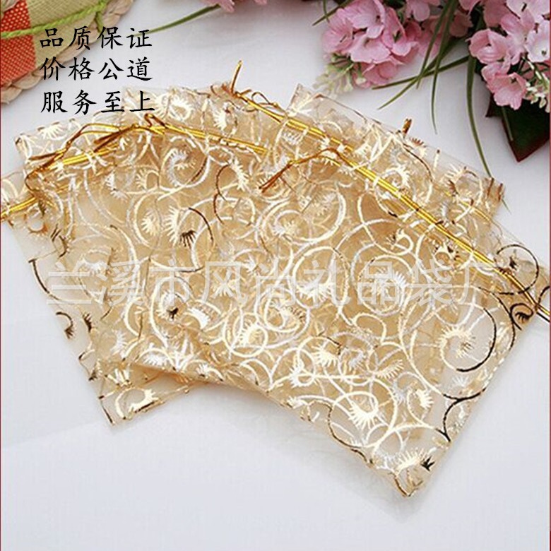 メーカー直販現物供給10x12cm金色箔押し眉花まつげ模様糸袋束ポケット