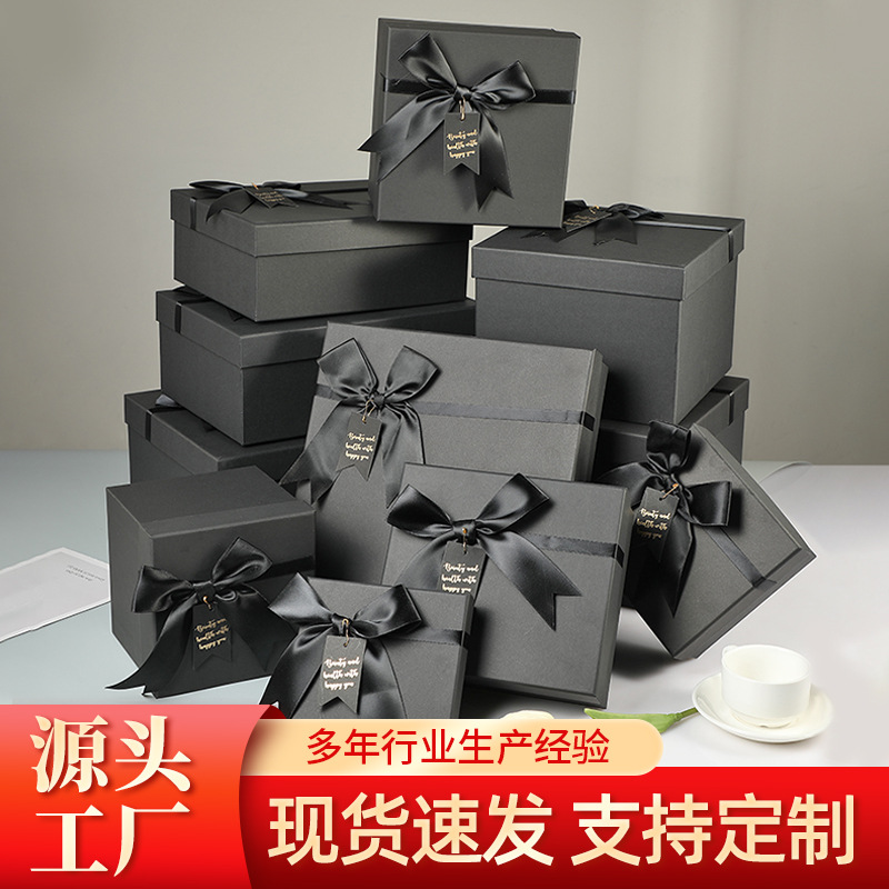 高級黒色蝶結びギフトボックス高級プレゼント包装箱精巧な祝日ギフトボックスカップル包装箱卸売り