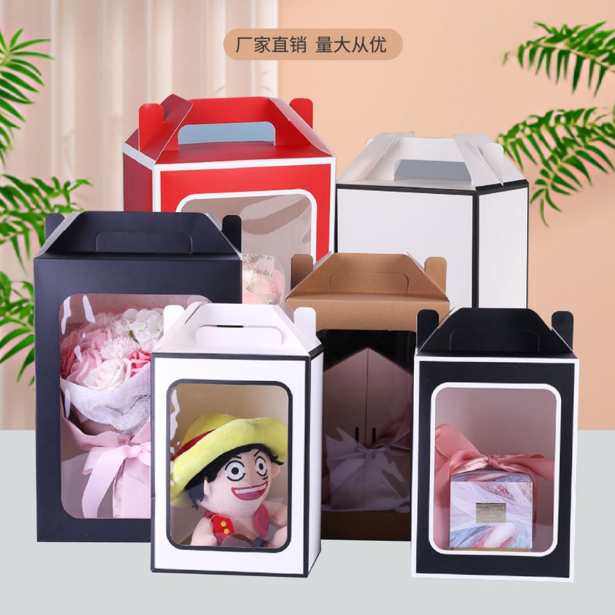 窓付きポータブル紙箱ホワイトカードハイエンド人形ギフトボックス無地ギフトボックス厚みのあるウィンドウギフトバッグプリント lolg