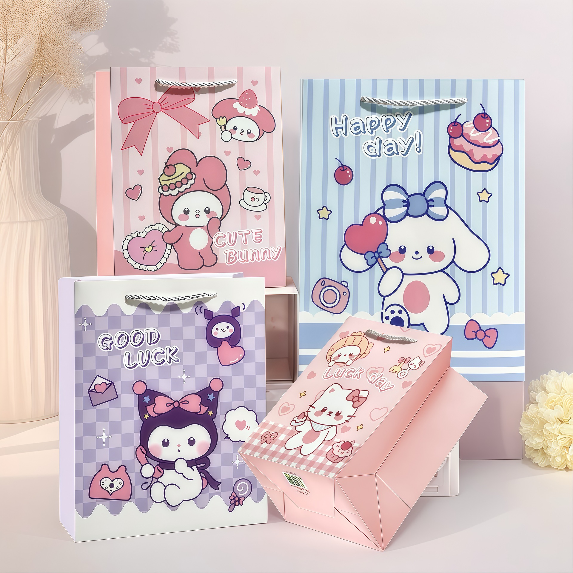 漫画のサンリオのギフトバッグの美しい厚手の白い紙の手提げ袋の子供の日のプレゼントの包装のお土産の紙袋