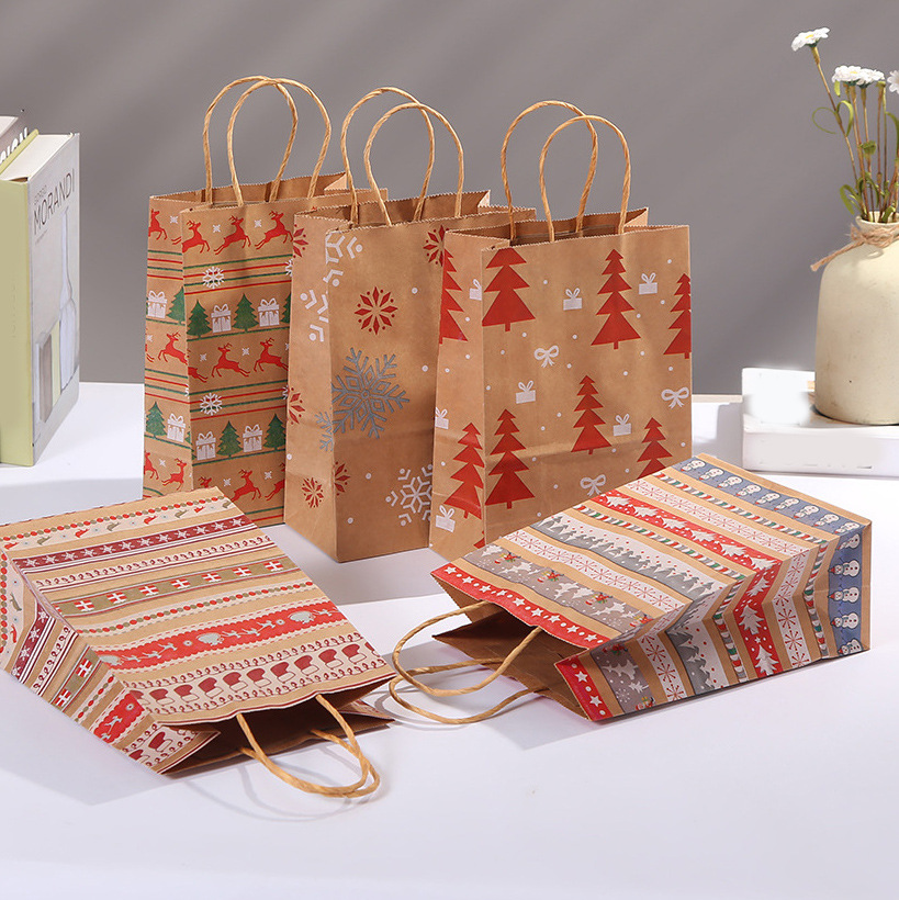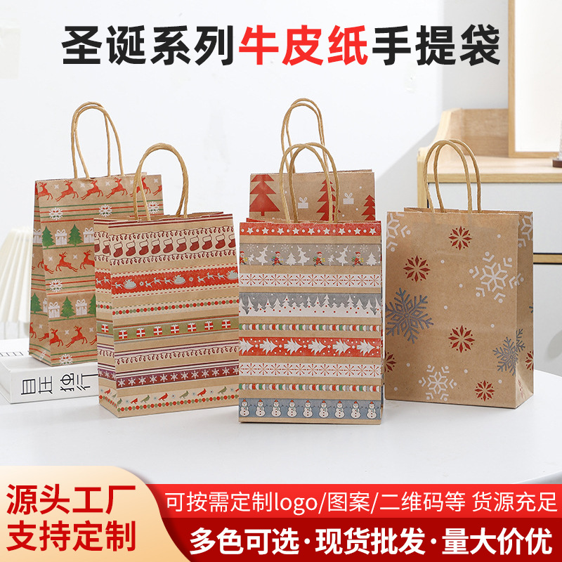 クラフト紙袋卸売りシンプルなレジ袋外売り袋クリスマスプリント手提げ袋パーティープレゼント袋