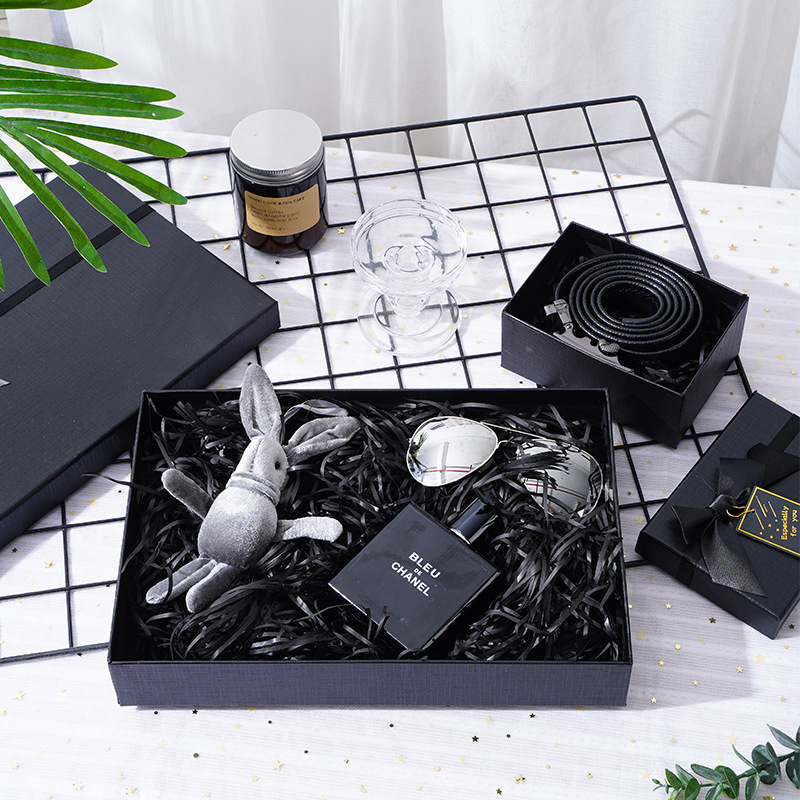 メーカーはギフトボックスの黒い長方形の蝶結びのプレゼントボックスの天地蓋の包装箱の口紅にロゴを印刷します。
