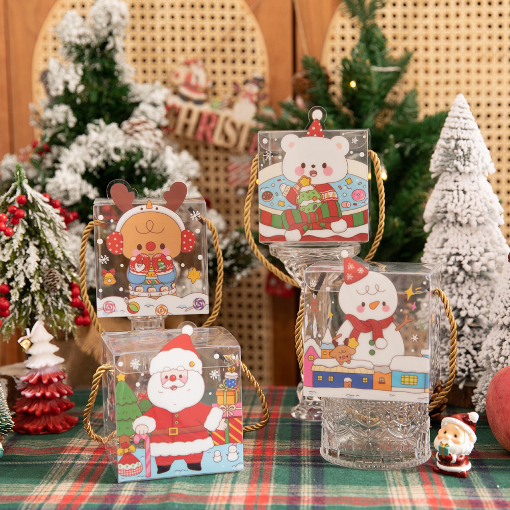 新しいクリスマスPVCリンゴ箱新しいアニメ透明手提げ箱立体平安夜プレゼント包装箱