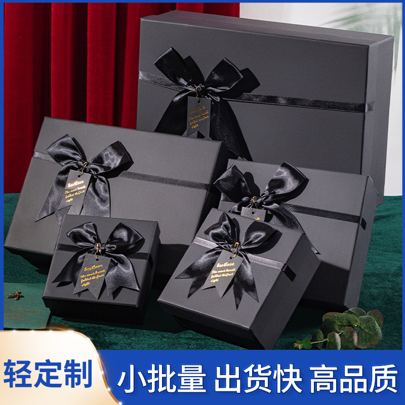現物の黒色の贈り物の箱の長方形の大きいサイズの蝶結びの贈り物の箱のお土産の天地の蓋の包装箱の卸売り