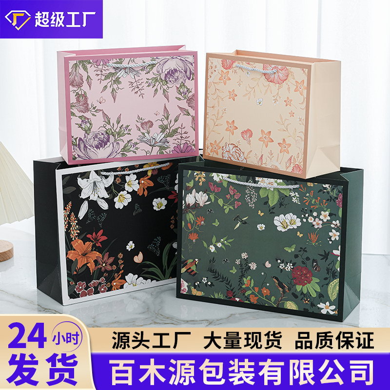 新品ファッション高级感ギフトバッグレトロ风手提げ紙袋グリーン森シリーズお土产プレゼント包装袋