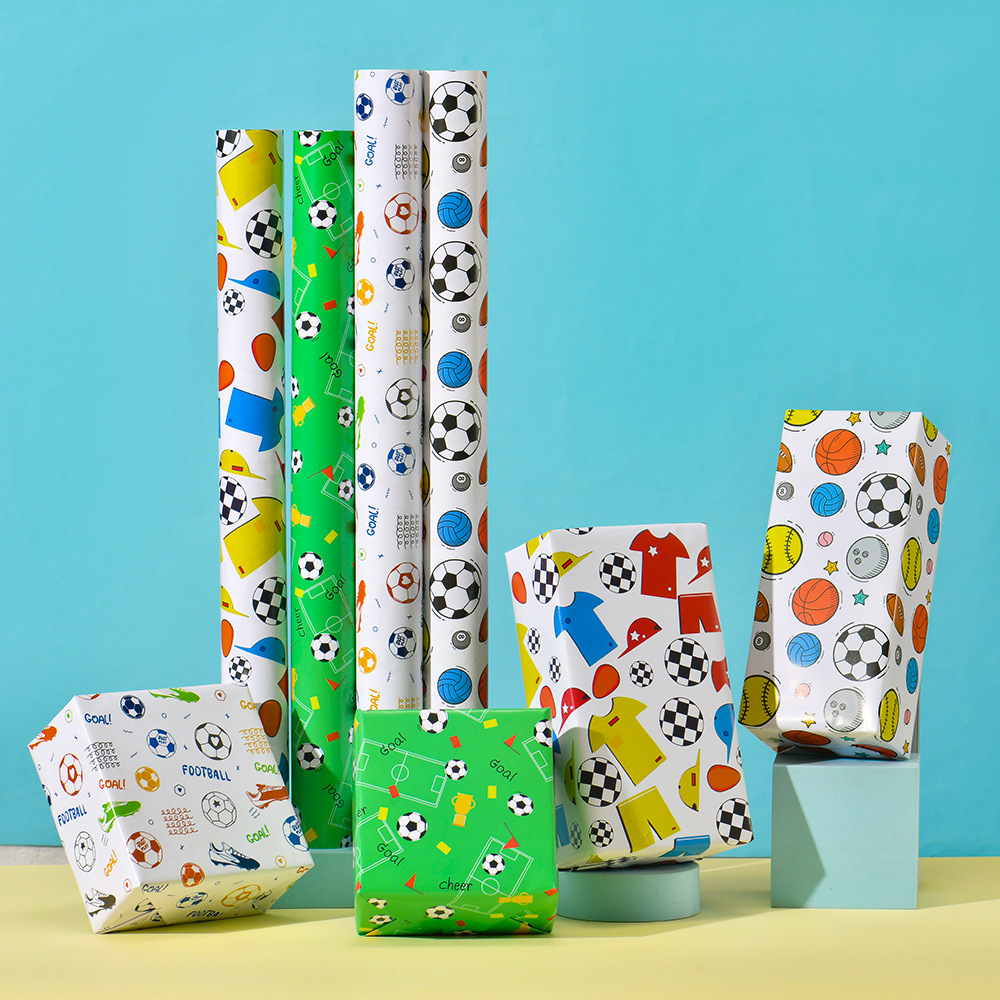 国境を越えた新しい漫画プレゼント包装紙卸売り子供の日サッカーバスケットボール包装色紙現物代金