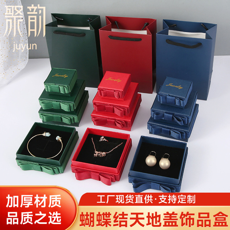 現物卸売りジュエリー包装箱高級蝶結び天地蓋指輪耳飾りネックレスブレスレットアクセサリー箱紙箱