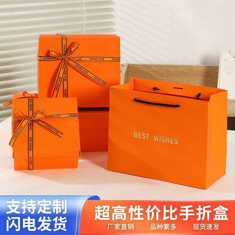 現物プレゼントの包装箱は青いオレンジ色で、ギフトボックスを開けます。