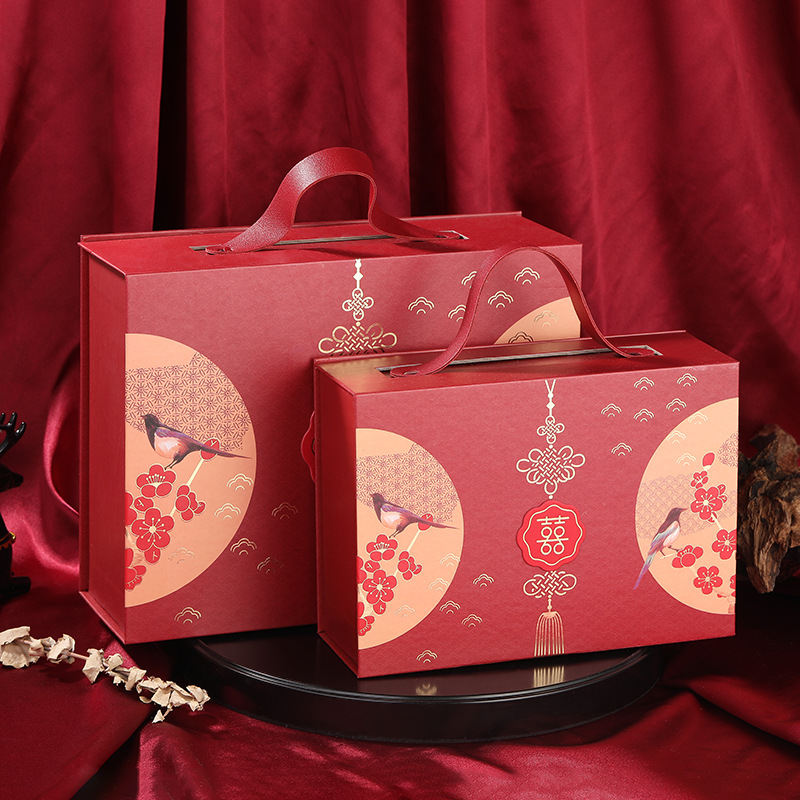 ギフトボックス包装箱空箱在庫あり赤色箔押しギフトボックス持ち運び用フルーツ土産ギフトボックス