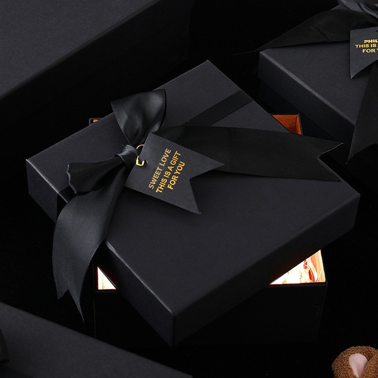 ギフトボックスのギフトボックスの空き箱のアイデアの黒い蝶結びの誕生日プレゼントの包装箱の男の子と女の子は友達に儀式感を送ります。