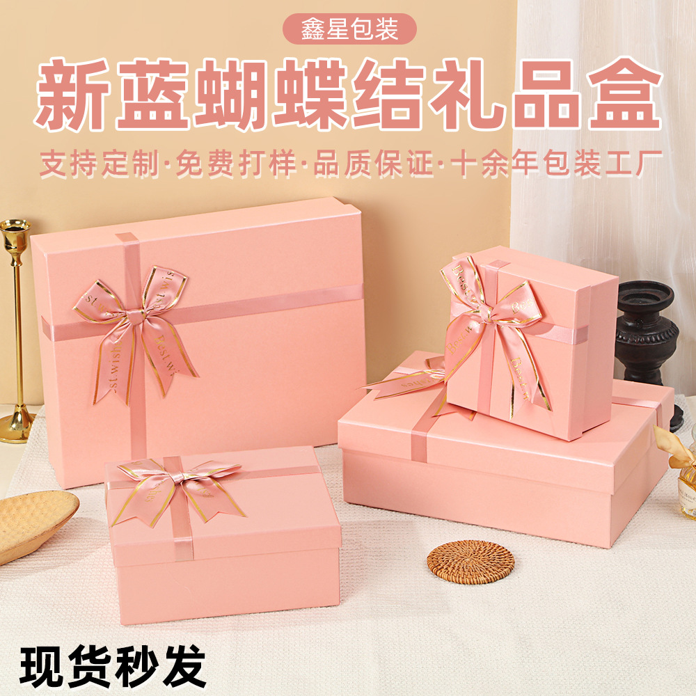 蝶結びピンクの天蓋包装箱高価値バレンタインデー誕生日ジュエリーギフト口紅化粧品紙箱