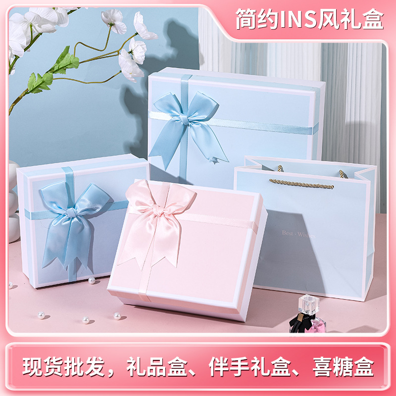 蝶結びの贈り物の箱の小さい清新で美しい天地の蓋の各種の祝日の贈り物のお土産の包装箱の空の箱の卸売り