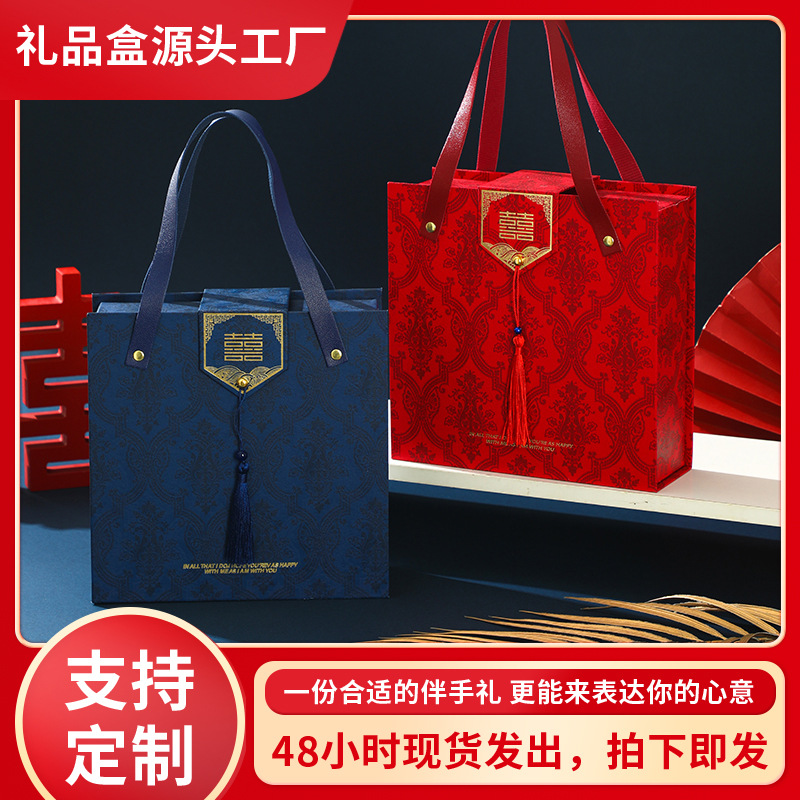 中国風のポータブル空箱結婚式のキャンディーボックス中国風の結婚式のお土産ギフトボックスハッピーワードタッセルハイエンドギフト包装ボックス