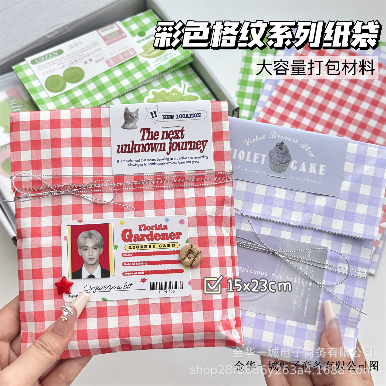 高品質マカロンチェック柄紙袋カード包装材包装袋大容量ジップロックバッグギフト収納袋