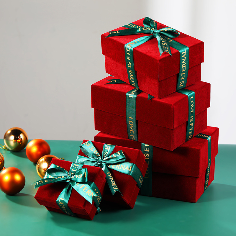 新しいクリスマスのギフトボックスのベルベットのウェディングボックスのリボンの包装ボックスのリボンの装飾のお土産ボックスのギフトボックス