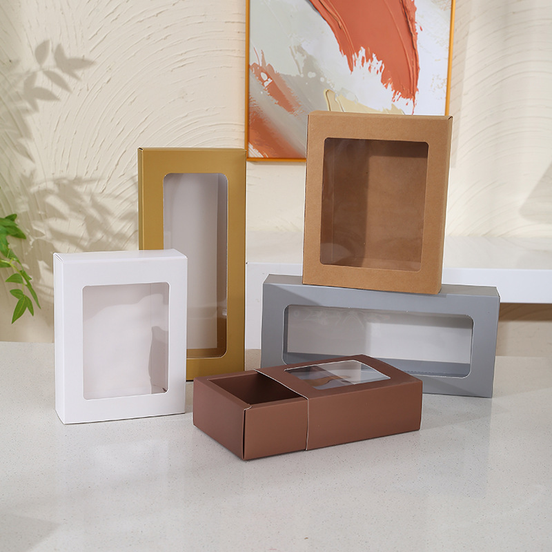 ソリッドカラーのシンプルなクラフト紙箱新しい中間透明文化遺物コレクションボックスキャンディーギフトホリデーギフトボックス