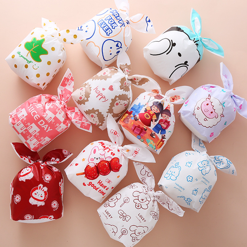 新商品の13.5*22アニメのかわいいウサギの耳の贈り物のキャンデーの雪の花のショートニングの牛は砂糖の食品の袋の50個を圧延して詰めます。