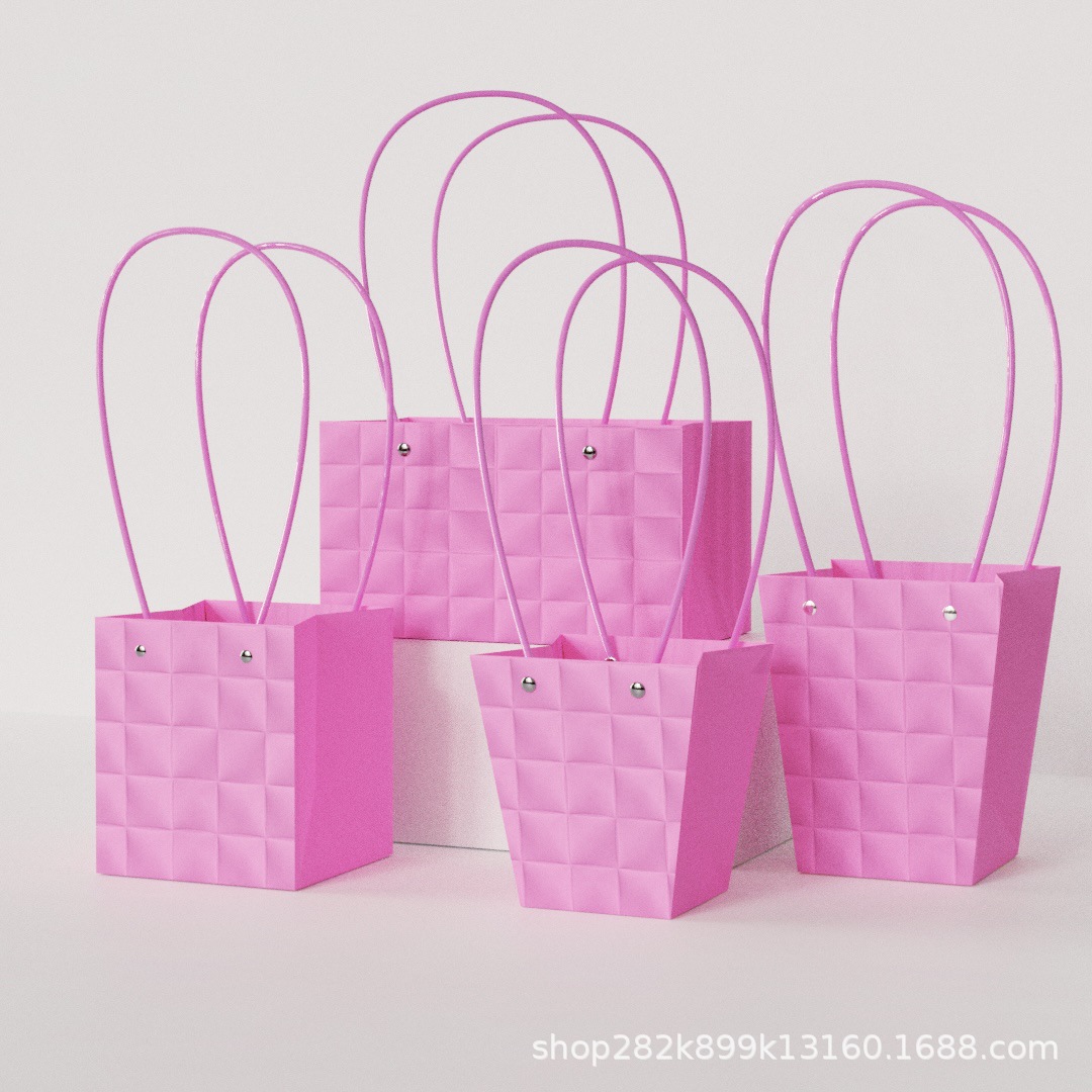 女性の日・女神の日向け 高級感漂うライトラグジュアリー風 格子模様エンボス加工フラワーバッグ ギフトバッグ スナックバッグ 多用途