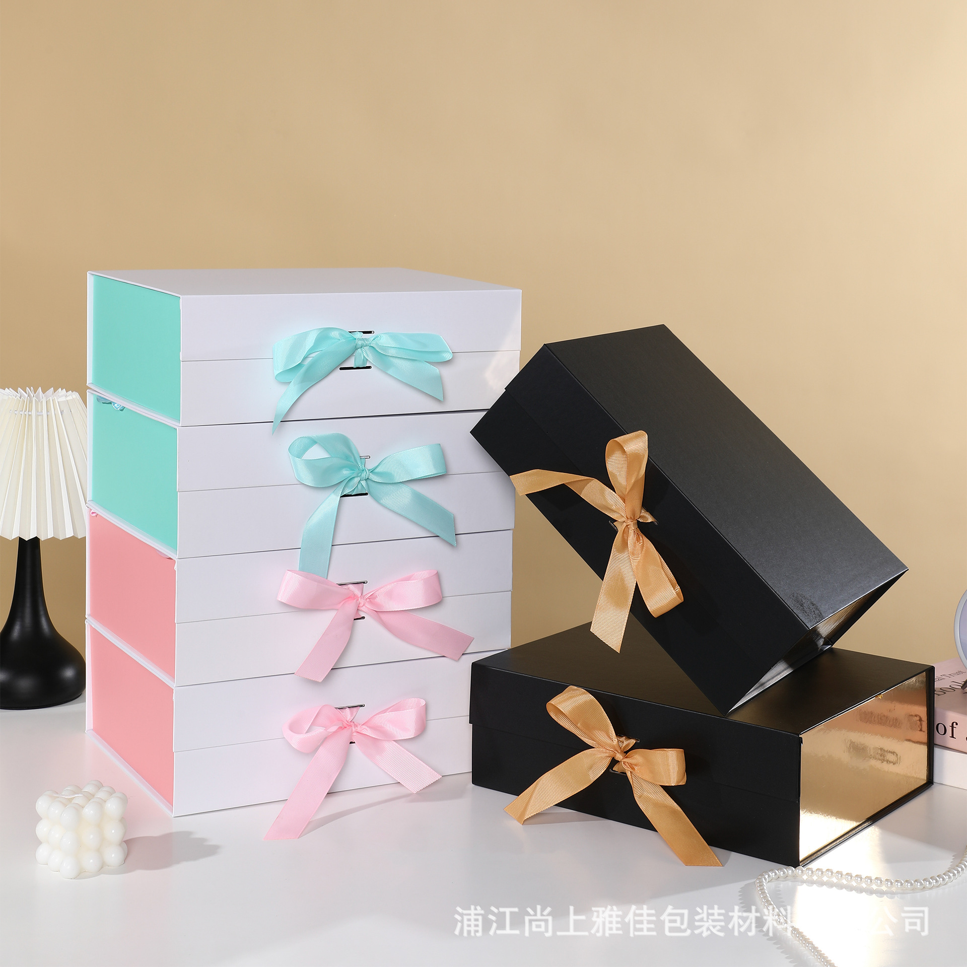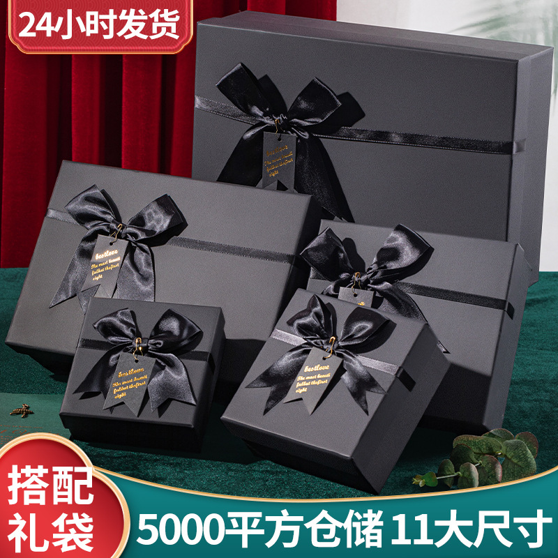 折り畳み天地蓋ギフトボックスリボン大サイズ靴服ギフトボックス一枚式折り畳みボックス黒色ギフトボックス