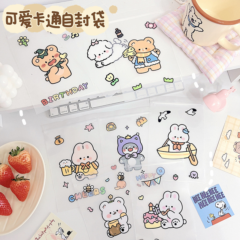 クリスマス漫画風可愛い動物柄おやつ袋 女の子らしいクッキー・キャンディー用 小さいサイズ マスク収納袋 キャンディーバッグ