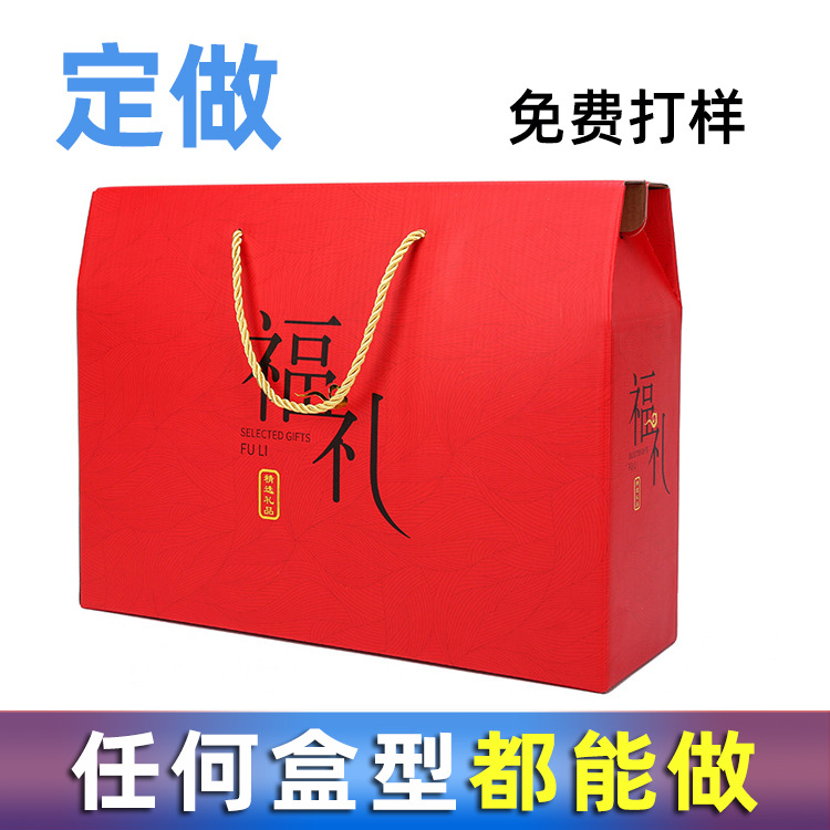 メーカー卸売りギフトボックス赤手提げ紙箱ドライフルーツ海鮮福礼包装ギフトボックス量が多い