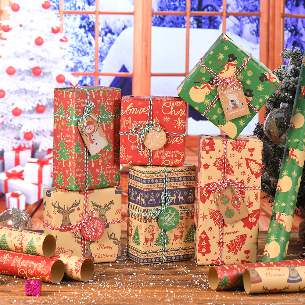 国境を越えた新しいクリスマス包装紙レトロクラフト紙クリスマスツリースノーフレーク雪だるまギフト包装ギフト紙