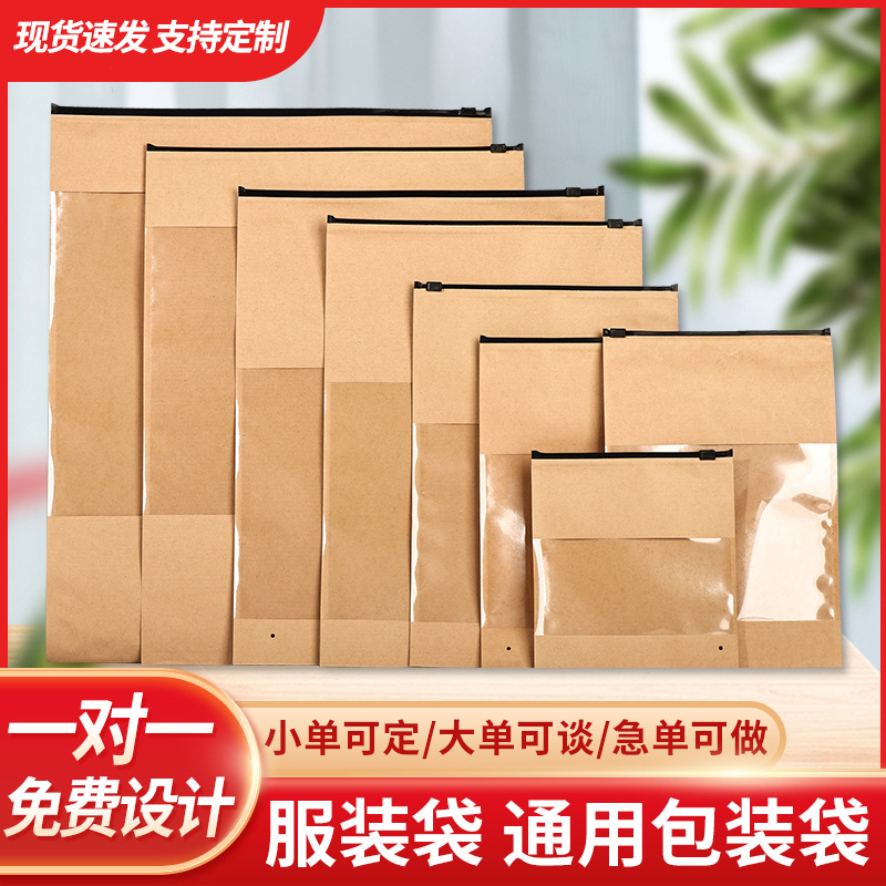 白いクラフト紙ジッパーバッグ衣類透明窓ユニバーサル衣類収納袋ホームテキスタイル包装袋プラスチックシール在庫あり