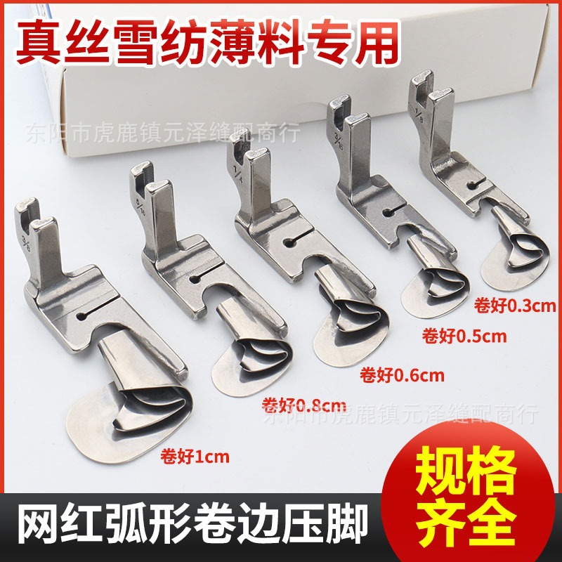 巻き縁押え、平縫い、曲線、全鋼製裾上げ器、シフォン・シルク専用、機械専用、耐高温、シルク専用