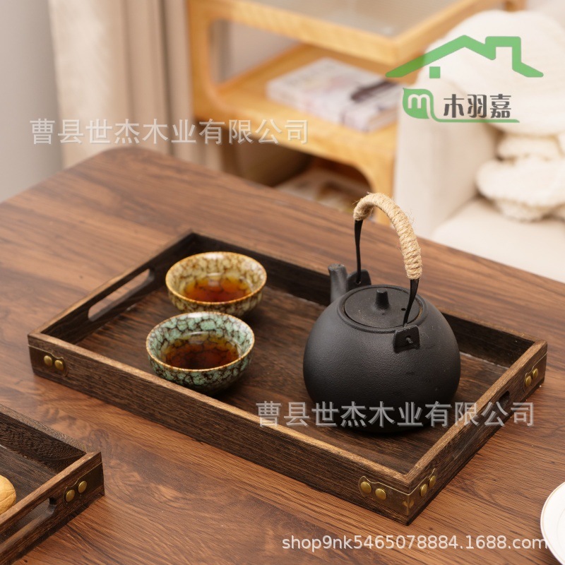 現物レトロ木製焼き色茶皿家庭用カンフー茶道収納トレーデスクトップコップ整理木トレー