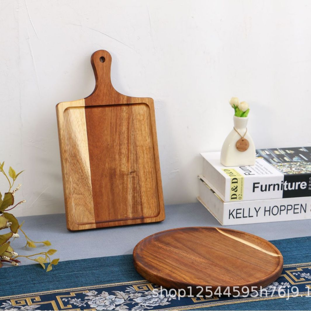 軽量高級アカシア材背の高いケーキトレイホームリビングルームクルミ分割トレイレストランスナック無垢材トレイ