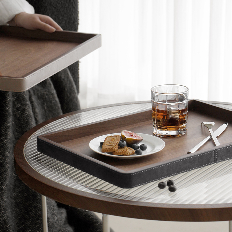 現代の高級胡桃の木のトレーの食事の皿の家庭用の客間のデスクトップの間食のお菓子の皮質の収納盤の装飾の置物