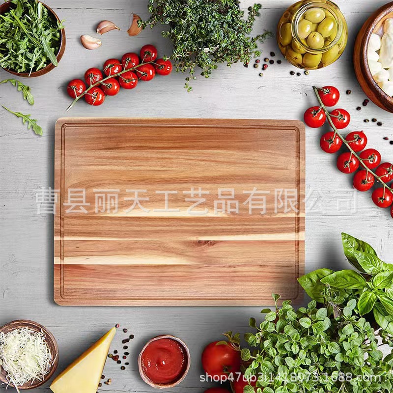 家庭用アカシアの木の長方形のまな板のアイデアの木製はジュースの溝式のまな板の台所の木製のパネルを切ります。