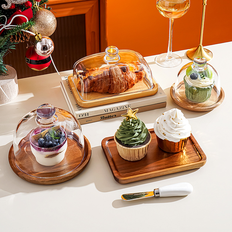 北欧インターネットセレブデザートガラスカバーケーキプレートトレイホームケーキ木製スナックトレイ高品質テイスティングトレイ
