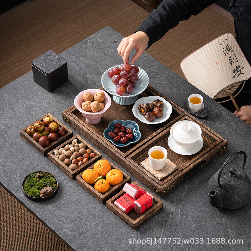 囲炉煮茶点皿中国式禅意菓子下昼寝茶トレー実木分格菓子軽食ドライフルーツ皿壷承