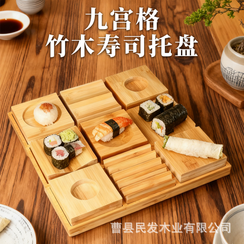 焼き色九宮格木造寿司トレーバイキング竹木刺身皿溝お菓子デザート展示木皿
