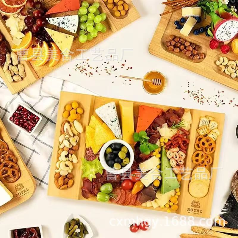 竹チーズトレイレストランパーティーディッシュフォーマルデリステーキディナープレート長方形フルーツスナックディスプレイトレイ