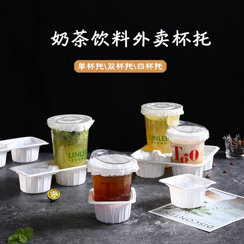 ミルクティーコーヒー飲料の販売漏れ防止使い捨てプラスチックカップは、2杯4杯のトレイを厚くして、商用で郵送します