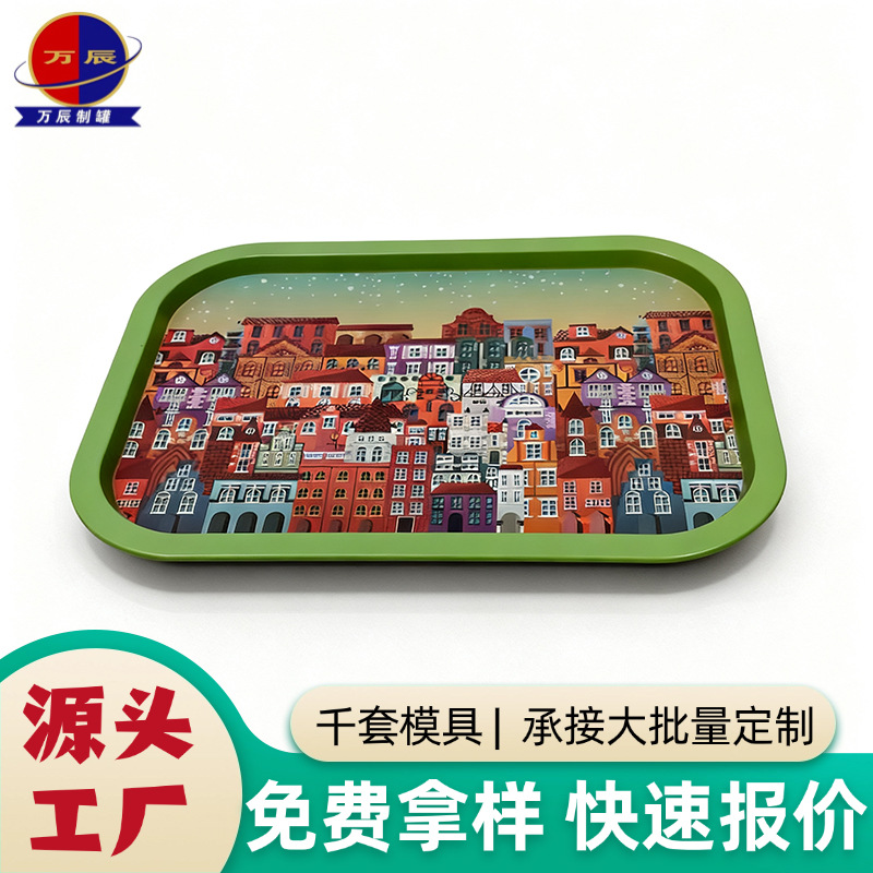 メーカー卸売り長方形ブリキ鉄トレーレトロプリント果物金属トレー中号滑り止め鉄皿
