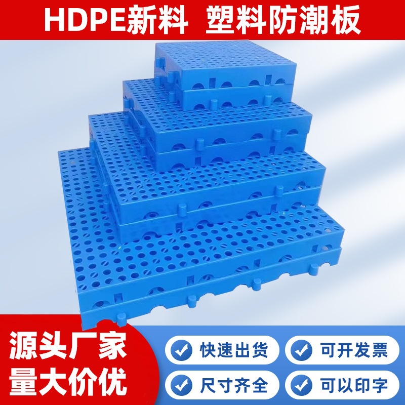 卸売厚手プラスチック防湿板倉庫スーパーマーケット長方形仕切り板四脚パッド付きグリッド連結プラスチックパレット