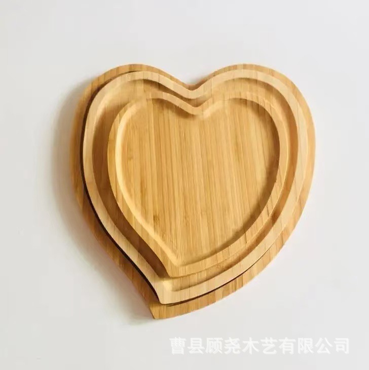 国境を越えたメーカー卸売り木製ハート型トレイ家庭用菓子果物皿バレンタインデー愛竹木トレイ
