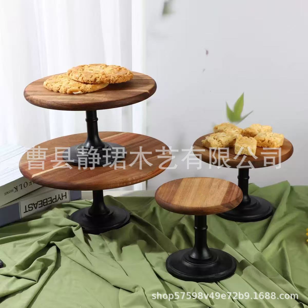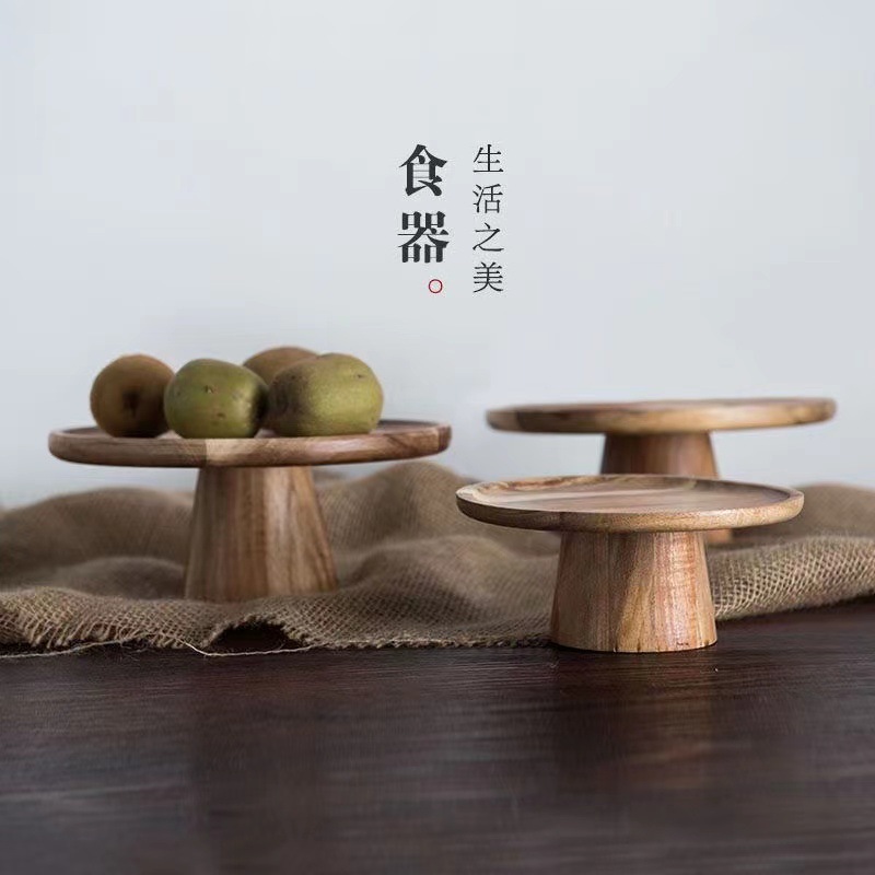 アカシアウッド結婚式誕生日デザートテーブル装飾木製ケーキプレート背の高い装飾品フルーツスナックトレイ